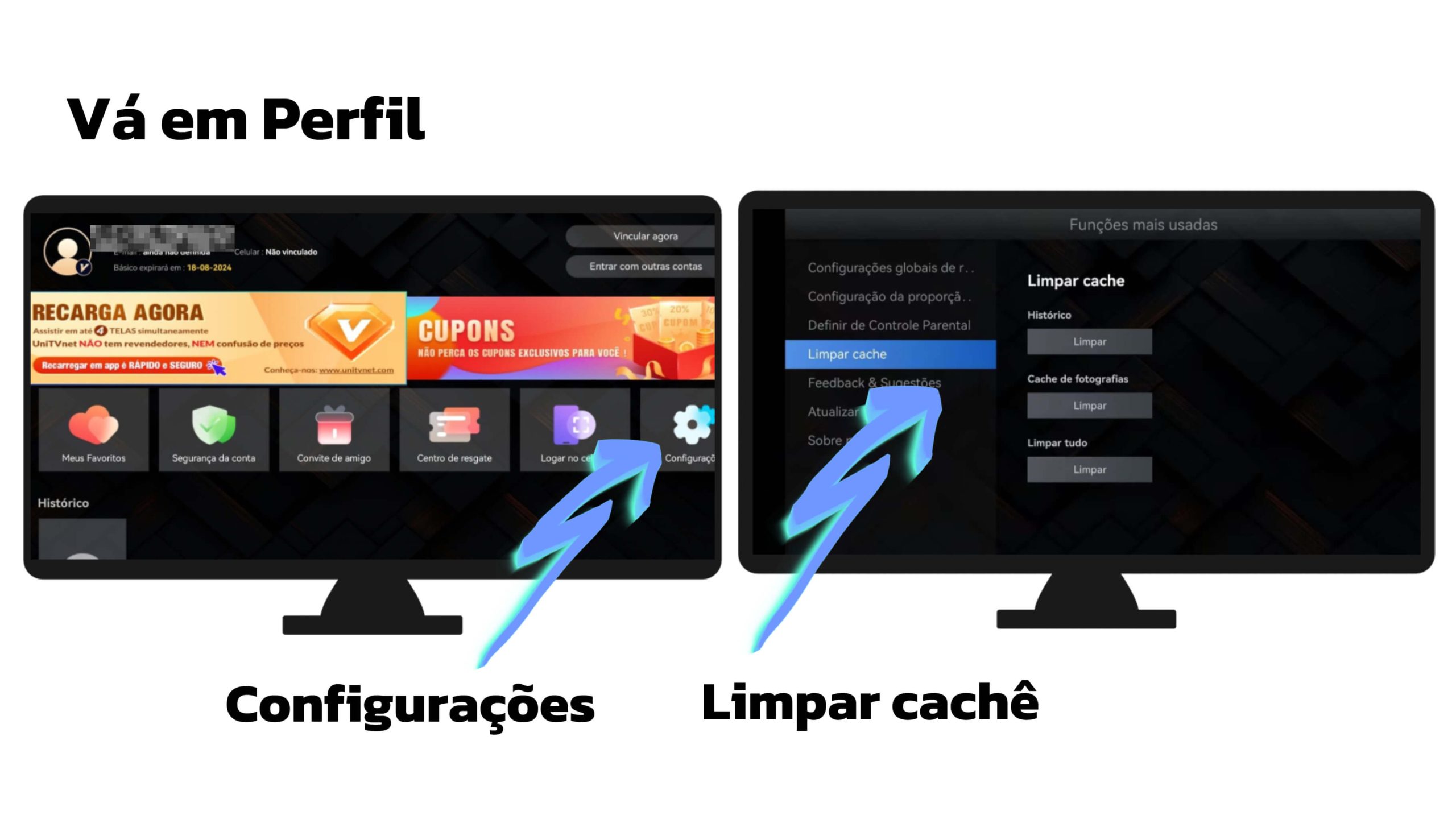 Nas opções de limpeza de cache, você pode limpar o cache de imagens e histórico de playback separadamente ou limpar todo o conteúdo.