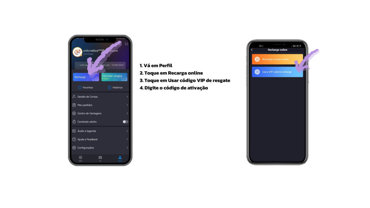 Compras feitas no Site Oficial (www.unitvnet.sbs), receberá um código VIP.
