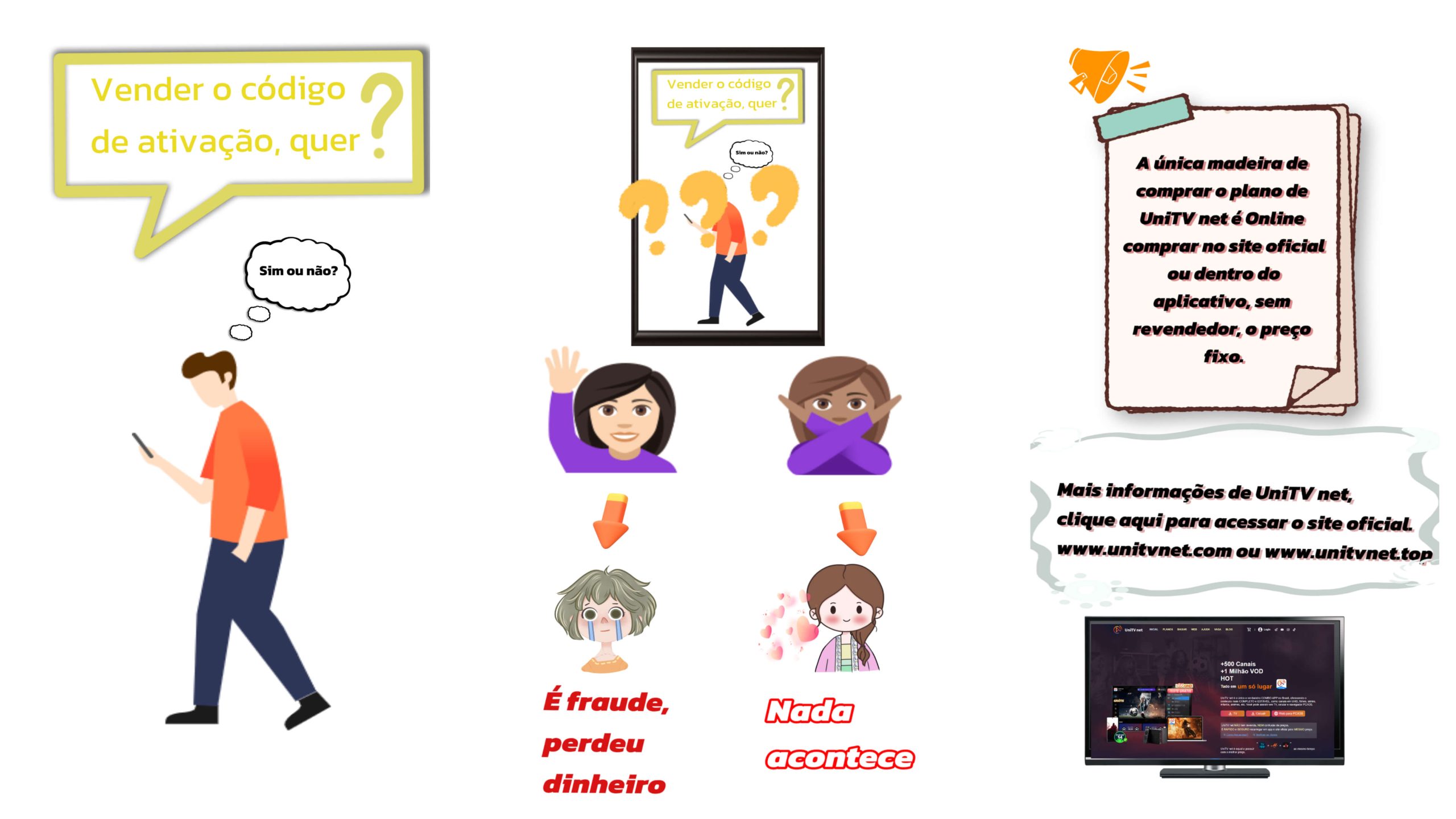 UniTV net não tem revendedores. Você pode comprar planos em TV, Celular, Web e no Site Oficial (www.unitvnet.sbs).